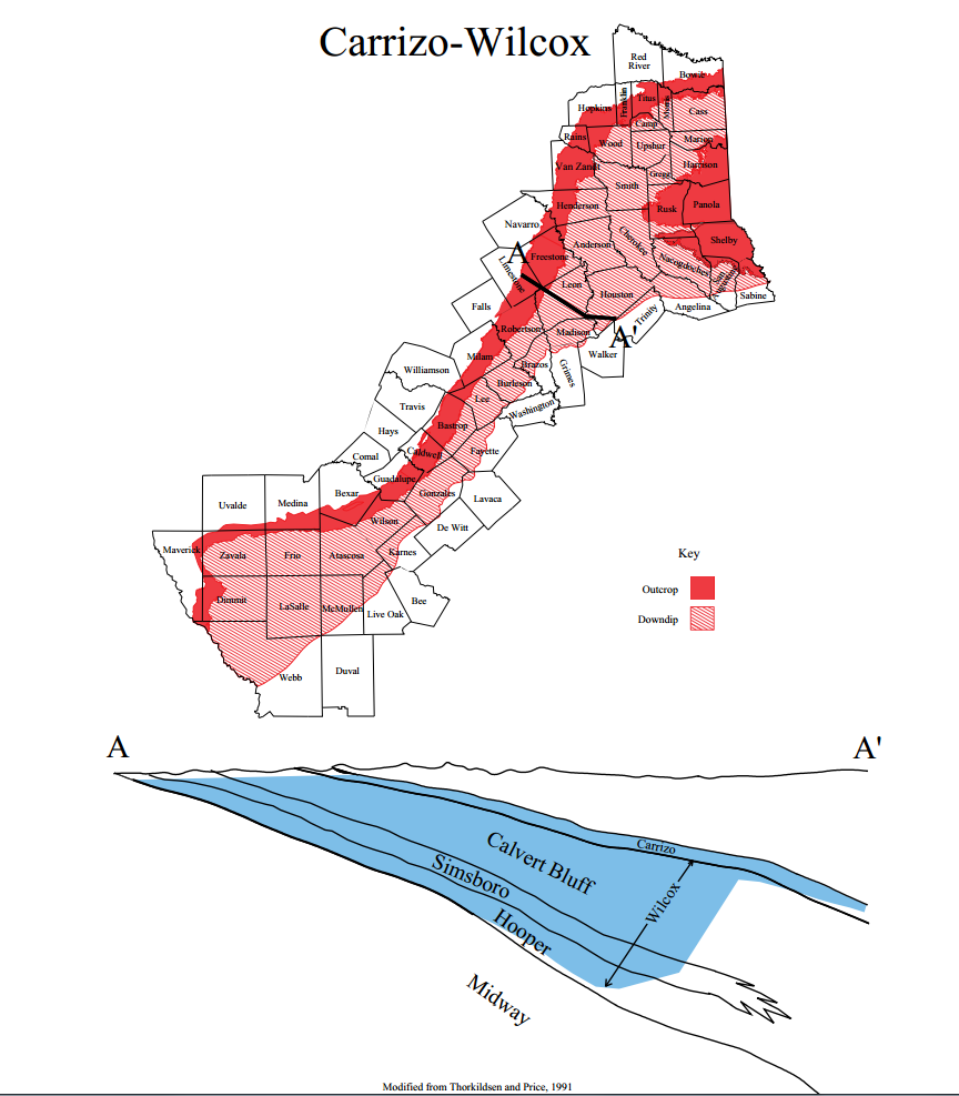 known as the Carrizo-Wilcox aquifer. This aquifer extends from the Rio Grande in South Texas northeastward into Arkansas and